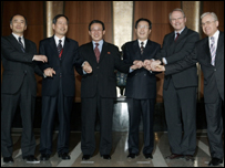 چینی نمائندے نے مذاکرات کے ان آخری ادوار کو’ بے انتہا کشیدگی‘ کا حامل قرار دیا جبکہ جنوبی کوریا کے حکام کا کہنا تھا کہ ان ملاقاتوں میں مثبت اقدمات اٹھائے گئے ہیں اور کچھ کلیدی اختلافات کا حل بھی تلاش کر لیا گیا۔ ابتدا میں معلوم ہورہا تھا کہ یہ سمجھوتہ ممکن نہیں ہوگا کیونکہ رکن ممالک کے مطابق ان کے مطالبات کے بدلے شمالی کوریا توانائی کی جو امداد طلب کررہا تھا وہ بہت زیادہ تھی۔ تاہم پیر کی شام سے رکن ممالک نے آخری کوشش کے طور پر مسئلہ کے حل کے لیے کوششیں شروع کیں۔ شمالی کوریا کے جوہری پروگرام کے حوالے سے جاری مذاکرات میں آخری پیش رفت ستمبر 2005 میں ہوئی تھی جب امریکہ اور شمالی کوریا میں معاہدہ طے پایا تھا تاہم یہ معاہدہ عملدر آمد کے طریقۂ کار پر اتفاقِ رائے نہ ہونے کی وجہ سے ناکام ہوگیا تھا۔ | اسی بارے میں جوہری مذاکرات جمود کا شکار11 February, 2007 | آس پاس جوہری پروگرام پر مفاہمت کا امکان19 January, 2007 | آس پاس ’مزید عالمی دباؤ کا سامنا کرنا پڑےگا‘22 December, 2006 | آس پاس شمالی کوریا مذاکرات بے نتیجہ21 December, 2006 | آس پاس پابندیوں پر پہلی بار بات چیت 19 December, 2006 | آس پاس مذاکرات دوبارہ شروع18 December, 2006 | آس پاس ’اتوار کو مذاکرات کروں گا‘17 December, 2006 | آس پاس | ||||||||||||||||||||||||||||||||||||||||