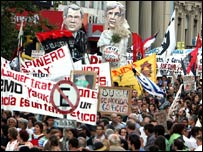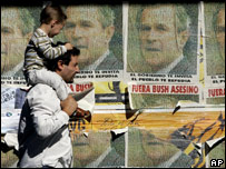 وینز ویلا کے صدر ہوگو شاویز نے امریکی صدر جارج بش پر شدید تنقید کرتے ہوئے انہیں ’استعمار کی علامت‘ قرار دیا ہے۔ ان دنوں دونوں صدور ایک دوسرے کی مخالفت میں لاطینی امریکہ کے دورے پر نکلے ہوئے ہیں۔ ارجنٹائن کے شہر بیونس آئرس میں ’سامراجیت کے خلاف‘ ایک ریلی سے خطاب کرتے ہوئے شاویز نے کہا کہ جارج بش کی حیثیت ایک ’سیاسی لاش‘ سے زیادہ نہیں۔ جب ہوگو شاویز بیونس آئرس میں چالیس ہزار کے جلسے سے مخاطب تھے تو اس وقت امریکی صدر پڑوسی ملک یوراگوئے کے دارالحکومت پہنچ رہے تھے۔ ہوگو شاویز جب جلسے میں امریکی صدر پر چلا رہے تھے تو وہ جارج بش سے تقریباً پینسٹھ کلومیٹر دور تھے۔ ہوگو شاویز اور جارج بش اپنے دورے میں اس سے زیادہ قریب نہیں آئیں گے۔ اپنے مخصوص سرخ سوٹ میں ملبوس شاویز نے پرجوش ریلی سے کہا ’ شمال سے آیا چھوٹا سامراجی اب اس دریا کی دوسری جانب اتر چکا ہوگا۔ چلیے اسے چیخ کر ایک پیغام دیتے ہیں ۔ گرینگو واپس جاؤ۔‘ برازیل سے روانگی سے قبل امریکی صدر نے کہا کہ ان کے دورے کا مقصد ہمسائیگی کےتعلقات بڑھانا تھا۔ ’میرے دورے کا مقصد اس بات کی جتنی ممکن ہو وضاحت کرنا ہے کہ ہماری قوم ایک فراخدل اور درِد دل رکھنے والی قوم ہے۔‘ روانگی سے پہلے امریکی صدر نے ایک معاہدے پر دستخط بھی کیے جس کا مقصد قدرتی اجزاء سے بنائی جانے والی ایتھنول کو پٹرول کے بدل کے طور پر فروغ دینا ہے۔