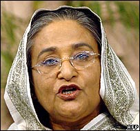 بنگلہ دیش میں پولیس نے سابق وزیراعظم شیخ حسینہ کے خلاف قتل کا ایک مقدمہ درج کیا ہے۔ اس مقدمے کی سماعت بائیس اپریل کو ہوگی۔ پولیس کا کہنا ہے کہ شیخ حسینہ گزشتہ اکتوبر ڈھاکہ میں ایک مخالف سیاسی جماعت کے چار کارکنوں کے قتل کی منصوبہ سازی میں ملوث تھیں۔ پولیس نے شیخ حسینہ کے علاوہ ان کی جماعت عوامی لیگ کے چھیالیس کارکنوں کے خلاف بھی مقدمہ دائر کیا ہے۔ گزشتہ جنوری میں جب بنگلہ دیش کی موجودہ عبوری حکومت نے ایمرجنسی نافذ کی تھی، شیخ حسینہ ملک سے باہر چلی گئیں۔ انہوں نے بی بی سی کو بتایا کہ وہ بہت جلد ملک واپس آئیں گی۔ شیخ حسینہ کا کہنا ہے کہ عبوری حکومت انہیں ڈرانے دھمکانے کی کوشش کررہی ہے۔ نامہ نگاروں کا کہنا ہے کہ اس بات کا امکان نہیں کہ فوج کی حمایت یافتہ عبوری حکومت کے اشارے کے بغیر شیخ حسینہ کے خلاف مقدمہ درج کیا گیا ہو۔ شیخ حسینہ کے خلاف مقدمہ ایسے وقت درج کیا گیا ہے جب عبوری حکومت نے دوسری سابق وزیراعظم خالدہ ضیاء کی نقل و حرکت پر پابندیاں عائد کردی ہیں۔ ان کے بیٹے کو کرپشن کے الزام میں گرفتار بھی کیا گیا ہے۔ امریکہ سے بی بی سی بنگالی سروس کو دیے گئے ایک انٹرویو میں شیخ حسینہ نے کہا کہ وہ ٹکٹ ملتے ہی پہلی فلائٹ سے بنگلہ دیش واپس آنے والی ہیں۔ عبوری حکومت نے اس سال جنوری میں ہونے والے عام انتخابات ملتوی کردی ہے اور اس کا کہنا ہے کہ صاف اور شفاف الیکشن اس وقت تک نہیں ہوسکتے جب تک ملک میں کرپشن سے نہیں نمٹا جاتا۔