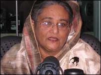 بنگلہ دیش میں حزب اختلاف کی جماعت عوامی لیگ کی رہنما شیخ حسینہ واجد نگران حکومت کی طرف سے لگائی جانے والی تمام پابندیوں کے باوجود اتوار کو لندن سے روانہ ہو کر پیر کو ڈھاکہ پہنچ رہی ہیں۔ ’میں ضرور جاؤں گی، میرا دیش ہے اور مجھے جنتا کی مکمل حمایت حاصل ہے‘۔ یہ بات شیخ حسینہ واجد نے ہفتہ کو بی بی سی اردو سروس کے لندن اسٹوڈیوز میں عمر آفریدی سے ایک خصوصی انٹرویو میں کہی۔ یہ انٹرویو انہوں نے اردو زبان میں دیا۔ شیخ حسینہ واجد نے کہا کہ انہیں نہیں معلوم کہ نگران حکومت کیوں ان کی بنگلہ دیش واپسی میں روکاوٹیں ڈال رہی ہے۔ انہوں نے کہا کہ وہ ان روکاوٹوں کو توڑ کر اپنے عوام کے پاس جائیں گی کیونکہ انہیں جنتا پر پورا بھروسہ ہے۔ پاکستان اور بنگلہ دیش کے تعلقات کے مستقبل کے بارے میں ایک سوال کے جواب میں انہوں نے کہا کہ بنگلہ دیش، بھارت اور پاکستان تینوں دیش علیحدہ ہیں ’لیکن ہمارے درمیان کوئی دراڑ نہیں ہونی چاہیے۔‘ انہوں نے کہا کہ ہمارا مسئلہ ایک ہے اور وہ ہے غربت۔ ’ہمیں چاہیے کہ ہم مل کر اس مسئلہ کو حل کریں اور جنتا کے لیے کام کریں اور ان کا دکھ اور ان کی مشکلات ختم کریں۔‘ شیخ حسینہ واجد نے اس انٹرویو کے دوران انیس سو اکہتر میں پاکستان سے علیحدگی اور بنگلہ دیش کی آزادی کے وقت کی یادوں کے بارے میں بھی بات کی۔