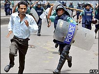 فوج کی طرف سے یونیورسٹی کیمپس خالی کیے جانے کے باوجود حالات میں بہتری نہیں آئی ہے۔ طالب علموں کا مطالبہ ہے کہ فوج کو ملک کے تمام تعلیمی اداروں سے نکالا جائے اور جن فوجیوں نے طلبا کے ساتھ بد سلوکی کی ہے انہیں سزا دی جائے۔ طلبا نے یہ بھی مطابہ کیا ہے کہ فوج کے سربراہ جنرل معین الاحمد ان سے معافی مانگیں اور تشدد میں زخمی ہونے والوں کو تبی اور مالی امداد دی جائے۔ | اسی بارے میں بنگلہ دیش: الیکشن 18 ماہ بعد05 April, 2007 | آس پاس حسینہ واجد ڈھاکہ پہنچ گئیں07 May, 2007 | آس پاس شیخ حسینہ کاحکومت پرمقدمہ29 July, 2007 | آس پاس بنگلہ دیش کے مسائل15 August, 2007 | آس پاس ڈھاکہ:طلباء اور پولیس کی جھڑپیں21 August, 2007 | آس پاس | ||||||||||||||||||||||||||||||||||||||||