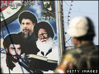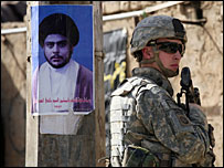 اس سال اپریل میں امریکی محکمۂ دفاع نے مہدی آرمی کو عراق کی سکیورٹی کے لیے سب سے بڑا خطرہ قرار دیا تھا۔ محکمۂ دفاع نے کہا تھا کہ مہدی آرمی نے القاعدہ تنظیم کی جگہ لے لی ہے اور یہ عراق میں فرقہ وارانہ تشدد میں اضافہ کرنے والی سب سے خطرناک تنظیم ہے۔‘ مہدی آرمی دو ہزار تین میں وجود میں آئی تھی اور اس وقت اس کے اراکین کی تعداد ساٹھ ہزار کے قریب ہے۔ امریکہ کا کہنا ہے کہ مہدی آرمی کو ایران نے تربیت دی ہے اور وہی اس کی مالی معاونت کرتا ہے اور اسے اسلحہ فراہم کرتا ہے۔ |