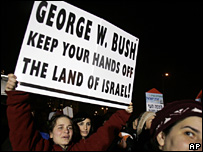 امریکہ کے صدر جارج بش نے یروشلم میں اسرائیل کے ساتھ ساتھ فلسطینی ریاست کے قیام کے بارے میں اپنے موقف کو اب تک کے سخت ترین الفاظ میں ظاہر کیا ہے۔ ایک نیوز کانفرنس سے خطاب کرتے ہوئے صدر بش نےکہا کہ’ 1967 میں جس قبضے کی شروعات ہوئی تھی اب اسےختم کر دینا چاہیے‘۔ انہوں نے مزید کہا کہ ’معاہدے میں یہ بات صاف ہو جانی چاہیے کہ جس طرح اسرائیل یہودیوں کی ملکیت ہے، اسی طرح فلسطینیوں کی بھی اپنی ریاست ہونی چاہیے‘۔ اطلاعات کے مطابق صدر بش نے اسرائیل کے وزیر اعظم ایہود اولمرت سے عشائیے پر ملاقات کی ہے۔ اسرائلیوں کا کہنا ہے کہ صدر بش کو’قبضے‘ جیسے لفظ کا استعمال نہیں کرنا چاہیے تھا۔لیکن ان کا یہ بھی کہنا ہے کہ صدر بش کا بیان ان کے لیے پوزیٹو یعنی مثبت ہے اور اس سے فلسطینیوں کے ساتھ بات چیت کا سلسلہ جاری رہے گا۔ چھ ہفتے قبل صدر بش نے اناپولس میں ایک عالمی امن کانفرنس کا اہتمام کیا تھا۔لیکن اس کانفرنس کے دوران کی گئی بات چیت اس وقت بیکار ہو گئی جب کانفرنس کے فوراً بعد اسرائیل نے یروشلم اور بیت الہم کے درمیان ہر ہومہ نامی خطے پر یہودیوں کو بسانے کا ایک نیا منصوبہ پیش کیا تھا۔ طویل عرصے سے یہودی بستیوں کے قیام کے سبب کئی فلسطینیوں کو اسرائلیوں پر یقین کرنے میں کافی مشکل پیش آتی ہے۔