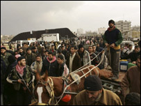 غزہ میں نقاب پوش فلسطینی عسکریت پسندوں نے ایک سرحدی دیوار کو بم کے دھماکوں سے اڑا دیا ہے جس کے بعد ہزاروں کی تعداد میں فلسطینی مصر میں داخل ہوگئے ہیں۔ غزہ کے باشندے کھانے پینے کا سامان، ایندھن اور دیگر ساز وسامان خریدنے کے لیے مصر کا رخ کر رہے ہیں کوینکہ اسرائیل کی ناکہ بندی کے بعد ان چیزوں کی شدید قلت پیدا ہوگئی ہے۔ اسرائیل نے غزہ سے کیے جانے والے راکٹ حملے روکنے کے لیے ناکہ بندی کر رکھی ہے اور مقامی بجلی گھر کو ایندھن کی سپلائی بھی معطل کردی ہے جس سے بہت سے علاقے اندھیرے میں ڈوبے ہوئے ہیں۔ عینی شاہدوں کے مطابق سرحد پر تعینات مصری سکیورٹی اہلکاروں نے فلسطینیوں کو روکنے کی کوشش نہیں کی۔