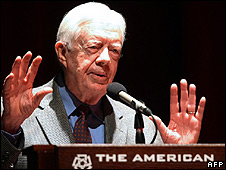 سابق امریکی صدر جمی کارٹر شام کے دارالحکومت دمشق میں ہیں جہاں وہ حماس کے جلاوطن سیاسی رہنما خالد مشعل سے ملاقات کریں گے۔ مسٹر کارٹر مشرق وسطی کے دورے پر ہیں جہاں انہوں نے مصر میں حماس کے رہنماؤں سے ملاقات کی ہے۔ ساتھ ہی وہ اسرئیلی صدر شمعون پیریز سے بھی بات چیت کر چکے ہیں۔ لیکن ہمارے نامہ نگار کے مطابق خالد مشعل سے ملاقات کی خبروں کے پیش نظر اسرائیل کے دیگر سینئیر رہنماؤں نے مسٹر کارٹر سے ملاقات سے انکار کر دیا ہے۔ لیکن اسرائیل کے وزیر صنعت ایلی یشائی نے مسٹر کارٹر کو بتایا ہے کہ وہ حماس کے رہنماؤں سے ملنے کو تیار ہیں تاکہ حماس نے جن اسرائیلیوں کو پکڑ رکھا ہے انہیں چھڑوانے کے لیے بات چیت کی جاسکے۔ ان کے ترجمان نے کہا کہ مسٹر یشائی نے مسٹر کارٹر کو یہ پیش کش ان کی شام آمد سے قبل کی تھی۔ فلسطینی عسکریت پسندوں نے دو سال قبل اسرائیلی علاقے میں چھاپہ مار کارروائی کرکے ایک اسرائیلی فوجی کو اغوا کر لیا تھا۔ تب سے انکی رہائی کی کوششیں جاری ہیں۔ اگر اسرائیلی وزیر کی حماس کی قیادست سے ملاقات ہوتی ہے تو یہ اسرائیلی حکومت کی پالیسیوں کے خلاف ہوگی۔ اسرائیلی وزیر اعظم ایہود اولمرٹ نے ایک اخبار کو بتایا کہ اگر وہ مسٹر کارٹر سے ملاقات کرتے تو یہ تاثر جاتا کہ وہ حماس سے مذاکرات کر رہے ہیں۔