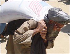 اقوام متحدہ کے خوارک کے عالمی پروگرام کے ڈائریکٹر ٹونی بینبری کا کہنا ہے کہ پاکستان اپنی ضرورت سے زیادہ گندم پیدا کرتا ہے لیکن ملک میں گندم اور آٹے کی قلت کی وجہ سے بڑھتی ہوئی قیمتوں کی بنا پر حکومت نے گندم کی برآمد پر پابندی عائد کر دی ہے۔ انہوں نے کہا کہ افغانستان میں مارکٹیں اور سڑکیں نہیں ہیں اور ملک کے دور دراز علاقوں تک خوراک پہنچانا بہت مشکل کام ہے۔ انہوں نے کہا کہ لوگ بہت غریب ہیں اس لیے خوراک کی قلت کی وجہ سے جو مشکلات دوسرے ملکوں میں پیش آ رہی ہیں وہ یہاں اور زیادہ سنگیں نوعیت اختیار کر گئی ہیں۔ انہوں نے کہا کہ اقوام متحدہ پاکستان کی حکومت سے مذاکرات کر رہا ہے کہ وہ خوراک کے عالمی پروگرام اور افغان حکومت کو کئی لاکھ ٹن گندم فروخت کر دے تاکہ افغانستان میں بحران پر قابو پایا جا سکے لیکن پاکستان میں نئی حکومت کو بھی مشکلات کا سامنا ہے۔ اس صورت حال سے افغانستان میں جو پہلے سے مشکلات اور عدم استحکام کا شکار ہے شدید بے چینی پیدا ہو رہی ہے۔ کابل شہر کے مغربی علاقے میں اقوام متحدہ کے عالمی ادارۂ خوراک کے ایک مرکز کے باہر ہزاروں کی تعداد میں لوگ جن میں خواتین کی ایک کثیر تعداد شامل ہے آٹے کا تھیلا ملنے کی امید کے لیے جمع ہوتے ہیں۔ بہت سے لوگ اس صورت حال کا ذمہ دار حامد کرزئی کی حکومت کو ٹھہراتے ہیں اور کچھ لوگوں کا کہنا ہے کہ اگر یہ صورت حال چند اور ہفتے برقرار رہی تو ان کا اور ان کے اہلِ خانہ کا کیا بنے گا۔ افغانستان میں یہ انسانی المیہ ہی صرف پریشانی کا باعث نہیں۔ گلیوں اور سڑکوں پر مظاہرے شروع ہو گئے ہیں اور ملک کا ایک بڑا حصہ طالبان کے قصبے میں ہے۔ اس صورت حال میں ملکی حالات مزید ابتری کا شکار ہو تے جا رہے ہیں۔ |