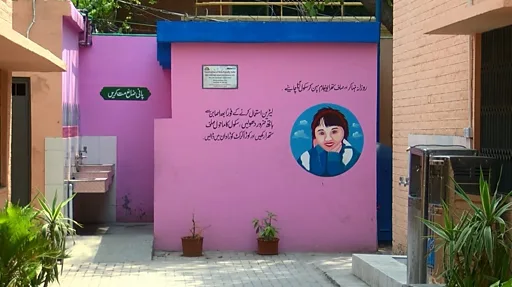 گلابی رنگ و روغن سے سجائے گئے اس بیت الخلا میں موجود سہولیات بھی لڑکیوں کی ضرورت کے عین مطابق ہیں۔ واش روم کی تعمیر میں معذور لڑکیوں کی ضروریات کا بھی اہم خیال رکھا گیا اور ان کے لیے کموڈ اور اس کے ساتھ پکڑنے کے لیے سہارا بھی بنایا گیا ہے۔