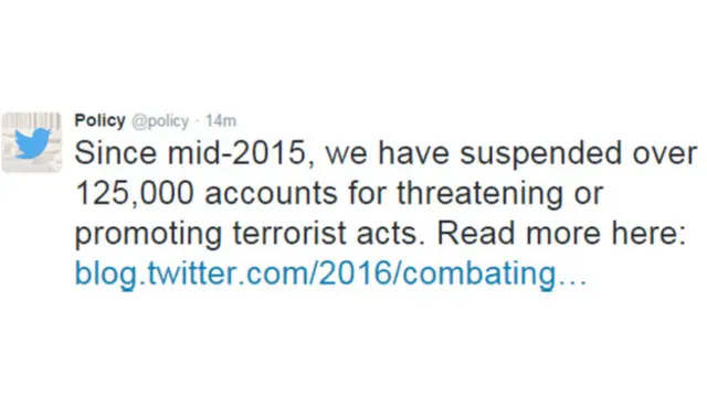 ٹوئٹر نے اپنے بلاگ پر بتایا ہے کہ معطل کیے گئے اکاؤنٹس ’زیادہ تر دولت اسلامیہ سے متعلق ہیں۔‘