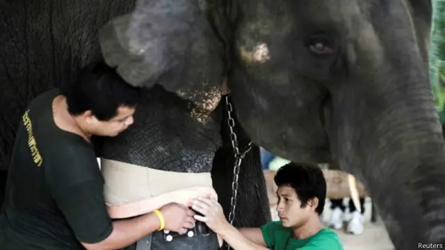 موشا نامی ہتھنی صرف سات ماہ کی تھی کہ میانمار اور تھائی لینڈ کی سرحد پر باردي سرنگ پھٹنے سے اس کا ایک ٹانگ ضائع ہو گئی۔