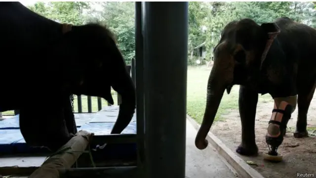 ہتھنی مصنوعی ٹانگ سے چلنے لگی