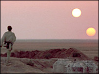 اگر امریکی خلائی ادارے ناسا کے پاس موجود اعداد و شمار کو دیکھا جائے تو فلم ’سٹار وارز‘ میں دکھائے جانے والے دو اکھٹے سورج محض تخیل کی پیداوار نہیں لگتے۔ انیس سو ستتر کی اس کلاسک فلم کے ایک سین میں ہیرو کو دور افق میں اُس طرف دیکھتے دکھایا گیا تھا جہاں دو سورج غروب ہو رہے ہوتے ہیں۔ ناسا کے ماہرین نے اپنی سپٹزر خلائی دوربین سے دیکھا ہے کہ کائنات میں دو سورجوں والے نظام ہائے شمسی کی تعداد اتنی ہی ہے جتنی ایک سورج والے نظاموں کی۔ ناسا کی اس تحقیق کی تفصیلات جریدے ’ایسٹرو فزیکل جرنل‘ میں شائع ہوئیں ہیں۔ تحقیق کے دوران ماہرین نے سپٹزر دوربین پر اِنفرا ریڈ کیمرے لگا کر ایک یا دو سورجوں والے نظاموں کے ارد گرد پائے جانے والے گرد کے ہالوں یا دائروں کو دیکھنے کی کوشش کی۔ عرف عام میں ’گرد کی ڈسکوں ‘ کے نام سے پہچانی جانے والی یہ پلیٹیں دراصل سیاروں کے بننے کے عمل کے دوران بچ جانے والے کچرے سے بنتی ہیں۔ اس سلسلے میں ناسا کے ایک سائنسدان کا کہنا تھا ’ ہم جانتے تھے کے خلاء میں ستارے یا سورج موجود ہیں، لیکن سوال یہ تھا کیا ان کے ارد گرد کوئی ایسا سیارہ بھی ہے جس پر کھڑے ہو کر آپ ان سورجوں کو طلوع و غروب ہوتا دیکھ سکتے ہیں۔ اب ہمارے پاس جو شواہد موجود ہیں ان کی بنیاد پر یہ زیادہ یقینی لگتا ہے کہ ایسے سیارے موجود ہیں جہاں جا کر ہم یہ مشاہدہ کر سکیں گے۔‘ اگرچہ اس بات کے امکانات ہیں کہ گرد کے ہالوں کے اندر سیارے بھی پائے جاتے ہیں لیکن یہ بہرحال قطعاً یقینی نہیں ہے۔ ناسا کی جمع کردہ معلومات کے مطابق دو ستاروں یا سورجوں والے نظاموں میں گرد کے ہالے پائے جانے کے امکانات ایک سورج والے نظاموں کے مقابلے میں زیادہ ہیں۔ اسی بنیاد پر ماہرین کا کہنا ہے کہ دو سورجوں کے گرد سیاروں کا پایا جانا |