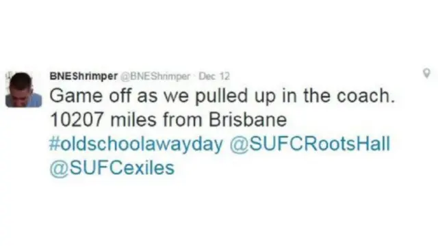 آسٹریلیا میں فٹبال کے ایک مداح نے ساؤتھ اینڈ یونائیٹڈ اور بریڈفورڈ کا میچ دیکھنے کے لیے دس ہزار میل کا سفر کیا لیکن پھر انھیں یہ پتہ چلا کہ میچ تو ملتوی ہو گیا ہے۔