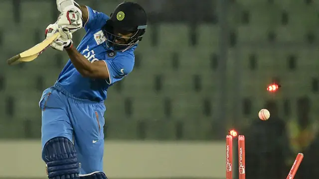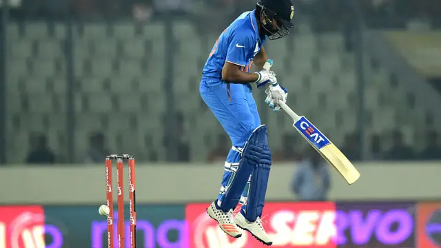 بنگلہ دیش کو چھٹی کامیابی اس وقت ملی جب ہردیک پاندیا17 گیندوں میں 31 رنز بنا کر کیچ آؤٹ ہوئے۔