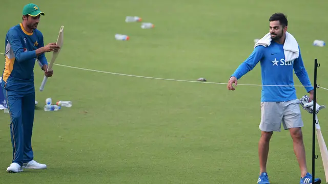 پاکستانی کپتان شاہد آفریدی میدان کی اس جانب گئے جہاں بھارتی ٹیم پریکٹس کررہی تھی اور انھوں نے بھارتی بیٹسمین ویراٹ کوہلی سے ہاتھ ملایا اور کچھ دیر بات کی اسی دوران ویراٹ کوہلی نے ایک کرکٹ بیٹ فاسٹ بولر محمد عامر کو تحفتاً دے کر انھیں خوشگوار حیرت سے دوچار کر دیا۔