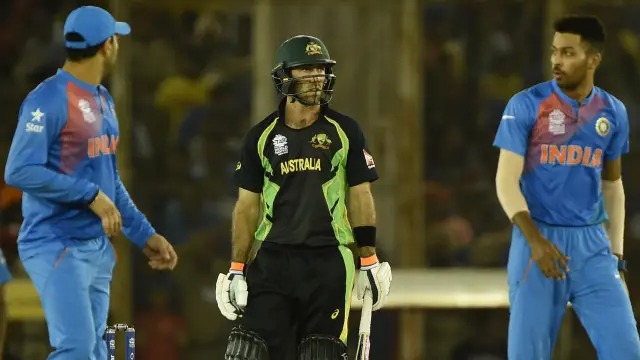بھمرا کی گیند پر میکسویل ایک اونچی شاٹ لگانے کی کوشش میں کلین بولڈ ہو گئے۔ انھوں نے 31 رنز بنائے۔