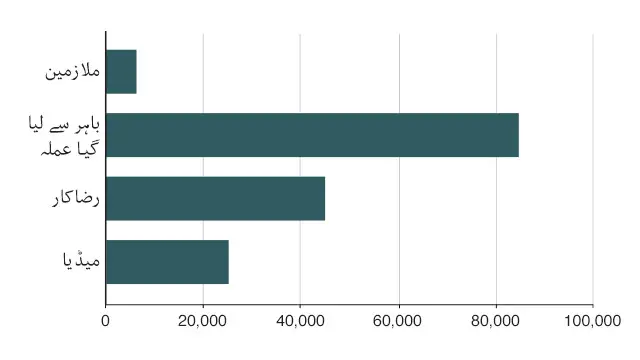 ان کھیلوں کو منعقد کرنے میں ایک لاکھ 40 ہزار افراد شامل ہیں۔ ان افراد میں 90 ہزار افراد کارکنان ہیں جبکہ 50 ہزار رضا کار۔