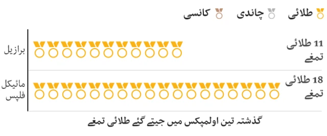 گذشتہ تین گیمز میں انھوں نے 18 طلائی تمغے جیتے ہیں۔ تمغے جیتنے کی یہ تعداد ریو میں حصہ لینے والے تمام تیراکوں کے جانب سے حاصل کیے گیے گئے تمغوں کی تعداد سے سات زیادہ ہیں۔