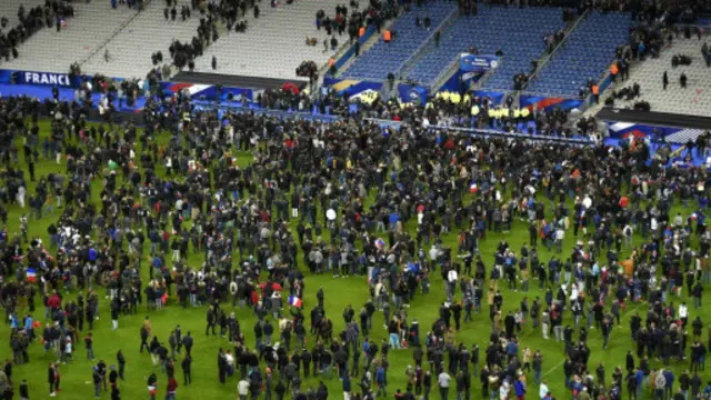 فرانسیسی صدر فرانسوا اولاند بھی میچ دیکھنے آئے ہوئے تھے، وہ اٹھ کر باہر چلے گئے۔ تاہم بہت سوں کو پتہ ہی نہیں چلا۔ بم کی آواز لوگوں کے شور میں ڈوب گئی تھی۔