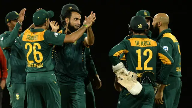 جنوبی افریقہ کی جانب سے ربادا نے تین، وین پارنل اور عمران طاہر نے دو، دو کھلاڑیوں کو آؤٹ کیا۔