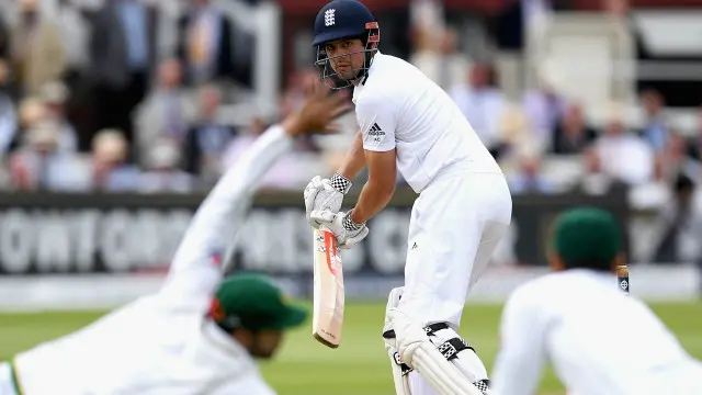 ایک نہیں، دو مرتبہ عامر انگلینڈ کی سب سے قیمتی وکٹ نہ لے سکے کیونکہ الیسٹر کُک کے دو آسان کیچ چھوڑ دیے گئے۔