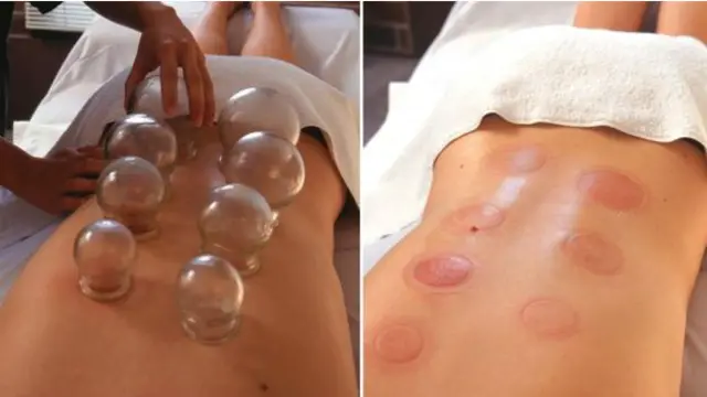 تاہم یہ نشانات نہ تو پینٹ بال کے کھیل کی وجہ سے ہیں اور نہ ہی یہ ’لو بائٹس‘ ہیں۔ یہ اس قدیم طریقۂ علاج کا نتیجہ ہیں جسے ’کپنگ‘ کے نام سے جانا جاتا ہے جس کے جلد پر گرم کپ رکھے جاتے ہیں۔