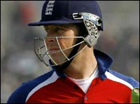 رانا نوید الحسن نے چوالیسویں اوور کی آخری دو گیندوں پر پہلے فلنٹوف اور پھر بلیک ویل کو آؤٹ کرکے انگلینڈ کی بڑا سکور کرنے کی امیدوں پر پانی پھیر دیا۔ آخری اوورز میں انگلینڈ کے دو کھلاڑی تیز رفتاری سےسکور کرنے کی کوشش میں رن آوٹ ہوئے تاہم اننگز کے آخری اوور میں لیئم پلنکٹ نے بارہ گیندوں پر چوبیس رن بنا کر انگلینڈ کے سکور کو206 پر پہنچا دیا۔ انہوں نے اپنی اننگز میں تین چوکے اور ایک چھکا لگایا اور آؤٹ نہیں ہوئے۔ انگلینڈ نے اپنی ٹیم میں ایک تبدیلی کی اور ان فٹ کھلاڑی کبیر علی کی جگہ شان یوڈل کو کھیلنے کا موقع دیا جبکہ پاکستان نے اپنی ٹیم میں تین تبدیلیاں کیں۔ پاکستان کے کپتان انضمام الحق کی جگہ یاسر حمید، شعیب اختر کی جگہ محمد آصف اور محمد سمیع کی جگہ ارشد خان کو کھلایا جا رہا ہے۔ انضمام الحق کی غیر موجودگی میں پاکستانی ٹیم کی باگ ڈور یونس خان کے ہاتھوں میں ہے۔ پاکستان کو ون ڈے سیریز میں ایک کے مقابلے میں تین میچوں کی فیصلہ کن برتری حاصل ہے۔ پاکستان: سلمان بٹ، کامران اکمل، یونس خان (کپتان)، محمد یوسف، یاسر حمید، شاہد آفریدی، شعیب ملک، عبدالرزاق، رانا نوید الحسن، محمد آصف اور ارشد خان اور دانش کنیریا(سپر سب)۔ انگلینڈ: مارکس ٹریسکوتھک (کپتان)، میتھیو پرائر، اینڈریو سٹراس، وکرم سولنکی، اینڈریو فلنٹاف، کولنگ ووڈ، گیرانٹ جونز، بلیک ویل، لیام پلنکٹ، شان یوڈال، سٹیو ہارمیسن اور جیمز اینڈرسن (سپر سب)۔ | اسی بارے میں سنسنی خیز میچ، پاکستان کی فتح19 December, 2005 | کھیل کراچی: پاکستان کی شاندار جیت15 December, 2005 | کھیل ’اب بھی جیت سکتے ہیں: پال کولنگوڈ16 December, 2005 | کھیل ورلڈ کپ جیتنے کی صلاحیت ہے: وان17 December, 2005 | کھیل ابھی سیریز جیتی نہیں ہے: انضمام15 December, 2005 | کھیل چوتھا میچ بہت اہم ہے: انضمام 18 December, 2005 | کھیل | ||||||||||||||||||||||||||||||||||||||||