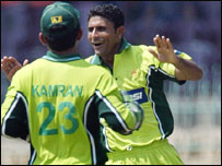 جواب میں پاکستان نے محمد یوسف، شعیب ملک اور عمران فرحت کی عمدہ بلے بازی کی بدولت مطلوبہ ہدف چھیالیسویں اوور میں حاصل کر لیا۔ محمد یوسف نے نصف سنچری بنائی۔ وہ 53 رن بنا کر آؤٹ ہوئے۔ شعیب ملک اور عمران فرحت نے چھیالیس رن کی خوبصورت اننگز کھیلی۔ سری لنکا کی جانب سے مرلی دھرن نے تین، معروف نے دو جبکہ دلشان نے ایک وکٹ حاصل کی۔ پاکستان کی جانب سے شاہد آفریدی اور محمد آصف نے تین، تین جبکہ عبدالرزاق اور شعیب ملک نے ایک، ایک وکٹ حاصل کی جبکہ دو سری لنکن کھلاڑی رن آؤٹ ہوئے۔