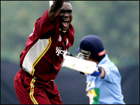 کوالالمپور میں سہ فریقی ٹورنامنٹ میں ویسٹ انڈیز نے انڈیا کو انتیس رنز سے ہرا دیا ہے۔ ویسٹ انڈیز نے دو کھلاڑیوں کے نقصان پر 141 رنز بناکر باآسانی تین سو دس رنز کا ہدف حاصل کر لیا۔اس سے قبل ایک روزہ میچ میں انڈیا نے 309 رنز بنائے تھے۔ ویسٹ انڈیز کی طرف سے لارا اور ساروان نے خوبصورتی سے اننگز کا آغاز کیا۔ اس کے بعد بارش نے انہیں 29 رنز کی فتح دلادی۔ انڈیا کی اننگز کی خاص بات ماسٹر بیٹسمین سچن ٹنڈلکر کی شاندار سینچری تھی۔ انہوں نے 148 گیندوں میں پانچ چھکوں اور 13 چوکوں کی مدد سے ناقابل شکست 141 رنز بنائے۔ انڈیا کی طرف سے آل راؤنڈر عرفان پٹھان نے دو چھکوں اور چھ چوکوں کی مدد سے 64 رنز بنائے۔ ویسٹ انڈیز کی طرف سے فاسٹ بالر ٹیلر نے دس اووروں میں چونسٹھ رنز دے کر تین کھلاڑیوں کو آؤٹ کیا۔ ڈی سمتھ اور کرس گیل نے ایک ایک کھلاڑی کو آؤٹ کیا۔ انڈیا کی ٹیم: راہول ڈراوڈ، سچن ٹنڈلکر، وریندر سہواگ، محمد کیف، سریش رائنا، مہندر دھونی، اجیت اگرکار، ہربھجن سنگھ، آر پی سنگھ اور مناف پٹیل۔ ویسٹ انڈیز کی ٹیم: کرس گیل، چندرپال، ساروان، برائن لارا، ویول ہائنڈز، ڈی سمتھ، سی ایس بوغ، بریڈشا، ٹیلر اور ایڈورڈز۔ | اسی بارے میں دھونی کے مداح آئی سی سی سے ناراض09 September, 2006 | کھیل یوراج پہلے میچ سے باہر12 September, 2006 | کھیل ثانیہ: رینکنگ میں کمی، ماڈلنگ متاثر13 September, 2006 | کھیل | ||||||||||||||||||||||||||||||||||||||||