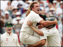آسٹریلیا نے پرتھ میں انگلینڈ کو 206 رنز سے شکست دے کر ایشز سیریز جیت لی ہے۔ پرتھ میں کھیلے جانے والے اس تیسرے ٹیسٹ کے پانچویں اور آخری روز انگلینڈ کی ٹیم 350 رنز پر آؤٹ ہو گئی۔ آسٹریلیا کے سپنر شین وارن نے اس اننگز میں چار وکٹیں حاصل کیں۔ اس سے شین وارن کی ٹیسٹ کرکٹ میں حاصل وکٹوں کی تعداد 699 ہو گئی ہے۔ انگلینڈ کے بیٹسمین کیون پیٹرسن 59 پر ناٹ آؤٹ رہے جبکہ کپتان اینڈریو فلنٹاف نے 51 رنز بنائے۔ | اسی بارے میں آسٹریلیا نے ایشز سیریز جیت لی18 December, 2006 | کھیل | ||||||||||||||||||||||||||||||||||||||||