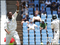 سنچورین کے میدان پر پاکستان اور جنوبی افریقہ کے درمیان پہلے ٹیسٹ کے پہلے دن کا کھیل ختم ہونے پر پاکستان نے پانچ وکٹ کے نقصان پر 242 رنز بنائے ہیں۔ پہلے دن کا کھیل کم روشنی کے باعث روکنا پڑا۔اس وقت تک 84 اوور کا کھیل ہی ہوسکا تھا۔ پانچویں وکٹ فیصل اقبال کی گری۔ انہوں نے 26 رنز بنائے۔ اس سے پہلے یاسر حمید 63 رنز بناکراے نیل کیی گیند پر کیچ ہوگئے۔ تیسری وکٹ یونس خان کی گری جنہیں شان پالک کی گیندر پر اے نیل نے کیچ کیا تھا۔ جنوبی افریقہ کی طرف سے ایم نتنی سب سے کامیاب بالر رہے جنہوں نے 52 رنز دیکر دو وکٹ لیے۔اے نیل، ایم پولک اور کالس نے ایک ایک وکٹ لیے۔ کھانے کے وقفے تک پاکستان نے دو وکٹوں کے نقصان پر 64 رنز بنائے تھے۔ پاکستان نےٹاس جیت کر پہلے بیٹنگ کرنے کا فیصلہ کیا تھا اور اننگز کا آغاز عمران فرحت اور محمد حفیظ نے کیا۔ تاہم 50 کے سکور پر دونوں اوپنر آؤٹ ہو گئے تھے۔ پہلا وکٹ 48 کے مجموعی سکور پر گرا جب عمران فرحت کو نتینی کی گیند پر آملہ نے کیچ آؤٹ کر دیا۔ فرحت نے 26 رنز بنائے۔