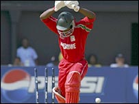 ویسٹ انڈیز نے ٹاس جیت کر زمبابوے کو پہلے کھیلنے کی دعوت دی اور اس کے بالروں نے ابتدائی اوورز میں ہی زمبابوے کی دو وکٹیں حاصل کر لیں۔ تیسری وکٹ کے لیے چبابا اور ٹیلر میں انتیس رن کی شرکت ہوئی اور جب زمبابوے کا سکور اکتیس پر پہنچا تو جیروم ٹیلر نے چبابا کو بارہ کے انفرادی سکور پر بولڈ کر دیا۔ زمبابوے کی چوتھی وکٹ انسٹھ کے سکور پر اس وقت گری جب متسیکنیری سمتھ کی گیند پر کیچ ہوئے۔زمبابوے کے آؤٹ ہونے والے دیگر کھلاڑیوں میں کستینی صفر اور سباندا ایک رن بنا کر آؤٹ ہوئے۔ ویسٹ انڈیز کی جانب سے جیروم ٹیلر نے دو جبکہ سمتھ اور پاول نے ایک، ایک وکٹ حاصل کی ہے۔ اس میچ کے بعد ویسٹ انڈیز گروپ ڈی میں چار پوائنٹس کے ساتھ سب سے اوپر ہے۔ آئرلینڈ کے تین اور زمبابوے کا ایک پوائنٹ ہے جبکہ اس گروپ کی چوتھی ٹیم پاکستان پہلے ہی عالمی کپ سے باہر ہو چکی ہے ۔ | اسی بارے میں میچ ٹائی، آئرلینڈ نے جیت چھین لی15 March, 2007 | کھیل بیٹنگ ناکام، پاکستان میچ ہار گیا13 March, 2007 | کھیل | ||||||||||||||||||||||||||||||||||||||||
