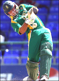جوہانسبرگ میں ویسٹ انڈیز کے کرس گیل نے ٹوئنٹی ٹوئنٹی بین الاقوامی میچوں کی پہلی سنچری تو بنا لی لیکن فتح پھر بھی جنوبی افریقہ کو حاصل ہوئی۔ آئی سی سی ورلڈ ٹوئنٹی ٹوئنٹی کے افتتاحی میچ میں ویسٹ انڈیز نے پہلے کھیلتے ہوئے مقررہ بیس اوورز میں چھ کھلاڑیوں کے نقصان پر دو سو پانچ رنز بنائے۔ جواب میں جنوبی افریقہ نے مطلوبہ ہدف دو وکٹوں کے نقصان پر اٹھارویں اوور میں حاصل کر لیا۔ ویسٹ انڈیز نے جنوبی افریقہ کی اننگز کے دوران تین کیچ گرائے اور تیئس (23) وائڈ بالز کیں۔ گیل نے ستاون گیندوں پر ایک سو سترہ رنز بنائے، جن میں دس چھکے بھی شامل تھے۔ جنوبی افریقہ کی طرف سے ہرشل گبز نے تیرہ چوکوں اور دو چھکوں کی مدد سے نوے رنز بنائے اور ناٹ آؤٹ رہے۔ میچ کے اختتام پر کپتان گراہم سمتھ کی نمائندگی کرتے ہوئے شان پولاک نے کہا کہ کرس گیل کی اننگز انتہائی شاندار تھی۔ ’لیکن اس کے باوجود حاصل ہونے والی جیت نے ہمارے حوصلے بلند کر دیے ہیں۔‘  | | | ہرشل گبز نے نوے رنز بنائے اور ناٹ آؤٹ رہے |