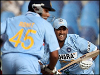 ون ڈے انٹرنیشنل کرکٹ میں یہ پانچواں موقع ہے کہ پاکستان نے تین سو یا زائد کا ہدف عبور کیا ہے ان پانچ میں سے چار کامیابیاں بھارت کے خلاف ہیں۔ اس سے قبل بھارت نے مقررہ پچاس اوورز میں سات وکٹوں کے نقصان پر تین سو آٹھ رن بنائے تھے۔ انڈیا کی طرف سے سب سے زیادہ سکور کپتان مہندر سنگھ دھونی نے بنایا جو چھہتر رن بنا کر ناٹ آؤٹ رہے۔ پاکستان کی طرف سے راؤ افتخار انجم نے دس اووروں میں اکیاون رن دے کر تین کھلاڑی آؤٹ کیے۔ انڈیا نے ٹاس جیت کر پہلے بیٹنگ کا فیصلہ کیا اور وریندر سہواگ اور گوتم گمبھیر کی جارحانہ بلے بازی کی بدولت ابتدائی دس اوورز میں اٹھاسی رن بنا ڈالے۔ اس موقع پر یکے بعد دیگرے تین بھارتی کھلاڑیوں کے آؤٹ ہونے سے بھارتی رن ریٹ کم ہوا ۔ تاہم بعد میں آنے والے بلے بازوں مہندر دھونی اور روہت شرما نے ٹیم کو سہارا دیا اور ان کے درمیان ایک سو بارہ رن کی شراکت ہوئی۔ دو سو اکتالیس رن کے مجموعی سکور پر شرما بھی نصف سنچری بنانے کے بعد پویلین لوٹ گئے۔یوسف پٹھان بغیر کوئی رن بنائے آؤٹ ہوئے۔ پاکستانی بالروں میں سہیل تنویر نے دس اووروں میں ستاسی رن دے کر ایک کھلاڑی آؤٹ کیا۔ عبدالرؤف نے دو کھلاڑیوں کو آؤٹ کیا جبکہ اپنا پہلا میچ کھیلنے والے سپنر سعید اجمل پاکستان کی جانب سے سب سے کفایتی بالر ثابت ہوئے۔ انہوں نے مقررہ دس اوور میں سینتالیس رن دیے اور ایک وکٹ حاصل کی۔