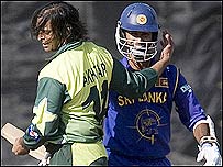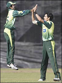 پاکستان کی اننگز ابتدا میں مشکلات کا شکار ہو گئی جب تیرہ رن کے مجموعی سکور پر سلمان بٹ اور شعیب خان جونیئر آؤٹ ہو کر پولین میں واپس چلے گئے۔ اس ٹورنامنٹ کی اب تک کی واحد نصف سنچری سکور کرنے والے کھلاڑی سلمان بٹ اپنے ایل بی ڈبلیو کے فیصلے پر مطمئن نظر نہیں آئے اور آؤٹ قرار دیئے جانے پر کھڑے ہو کر بال کو دیکھتے رہے۔ اس کے بعد یونس خان اور مصباح الحق نے اننگز کو سنبھالا اور سکور کو اکسٹھ تک لے گئے جب سری لنکا نےکوشالیہ ویرارتنے کو گیند کرنے کے لیے بلایا۔ انہوں نے پہلے یونس خان کو اور پھر مصباح الحق کو آؤٹ کر دیا۔ ویرارتنے نے اس کے بعد سہیل تنویر کو آؤٹ کر دیا جبکہ دوسری طرف دل ہارا فرنینڈو نے وکٹ کیپر کامران اکمل کو آؤٹ کر دیا۔ اس وقت پاکستان نے اکانوے رن بنائے تھےاور وہ سری لنکا کے ایک سو سینتس رن کے ہدف کا پیچھا کر رہی تھی۔ لیکن اس کے بعد شعیب ملک اور فواد عالم کے درمیان شراکت نے پاکستان کو کامیابی سے ہمکنار کر دیا۔ اس میچ میں سری لنکا نے مہیلہ جے وردھنے اور اجنتا مینڈس کو نہیں کھلایا تھا جو اسے مہنگا پڑا۔ پاکستان کی طرف سے عمر گل نے چار کھلاڑیوں کو آؤٹ جب کہ شعیب ملک صرف ایک وکٹ حاصل کر سکے۔ سری لنکا کی نو وکٹیں گریں۔ | اسی بارے میں ٹونٹی ٹونٹی کے لیے ٹیم کا اعلان07 October, 2008 | کھیل کوچ سے مطمئن نہیں: چیئرمین08 October, 2008 | کھیل صلاح الدین صلو مستعفی ہوگئے08 October, 2008 | کھیل جرمانہ ادا کیے بنا کھیلنے کی اجازت08 October, 2008 | کھیل ’فٹنس ٹورنامنٹ میں فائدہ دے گی‘09 October, 2008 | کھیل | ||||||||||||||||||||||||||||||||||||||||