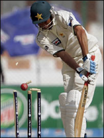پاکستان اور سری لنکا کے درمیان کراچی ٹیسٹ ڈرا ہوگیا۔ 313رنز کی شاندار اننگز کھیلنے والے یونس خان مین آف دی میچ قرار پائے۔ کھیل کے آخری دن پاکستان نے اپنی پہلی اننگز چھ وکٹوں پر765 رنز بناکر ڈیکلئر کردی جس کے بعد میزبان بولرز نے سری لنکا کی دوسری اننگز میں پانچ بلے بازوں کو آؤٹ کرکے میچ کو دلچسپ بنادیا تاہم سماراویرا اور پرسنا جے وردھنے آٹھ اوورز کھیل کر ٹیسٹ کو ڈرا کی طرف لے گئے۔ جب میچ دس اوورز پہلے ختم ہوا تو سری لنکا نے144 رنز بنائے تھے۔ سمارا ویرا24 اور پرسنا جے وردھنے7 رنز پر ناٹ آؤٹ تھے۔ مالندا ورنا پورا کو دو رنز پر عمرگل نے کامران اکمل کے ہاتھوں کیچ کرا دیا۔ اپنا پہلا ٹیسٹ کھیلنے والے پرانا وتھانا جو پہلی اننگز میں صفر پر آؤٹ ہوئے تھے دوسری اننگز میں بھی ناکام رہے اور نو رنز بناکر یاسرعرفات کی تھرو پر رن آؤٹ ہوگئے۔ تلکارتنے دلشن کو عمرگل نے آٹھ کے سکور پر فیصل اقبال کے ہاتھوں کیچ کرا دیا۔ پہلی اننگز میں غیرمتاثر کن بولنگ کے بعد دانش کنیریا نے دو اہم وکٹیں حاصل کرکے سری لنکن ڈریسنگ روم میں پریشانی پیدا کردی۔ پہلے انہوں نے22 رنز بنانے والے مہیلا جے وردھنے کو فیصل اقبال کے ہاتھوں کیچ کرایا اور پھر سنگاکارا کو بھی ایل بی ڈبلیو کرکے پویلین کی راہ دکھادی۔ سنگاکارا نے صرف 66 گیندوں پر دس چوکوں کی مدد سے65 رنز سکور کئے۔ اس وقت سری لنکا کا سکور ایک سو بیس رنز تھا اور اسے سترہ اوورز مزید کھیلنے تھے۔ اس سے پہلے پاکستان کی طویل اننگز میں متعدد ریکارڈز بنے۔ 765رنز ٹیسٹ کرکٹ میں پاکستان کا سب سے بڑا سکور بھی ہے۔ 1987ء میں انگلینڈ کے خلاف اوول میں708 رنز بنائے تھے۔ یہ ٹیسٹ کرکٹ میں سری لنکا کے خلاف بھی کسی ٹیم کا سب سے بڑا سکور ہے۔ 1986ءمیں بھارت نے کانپور میں سات وکٹوں پر676 رنز بنائے تھے۔ اس کے علاوہ پاکستانی سرزمین پر بھی یہ ٹیسٹ کرکٹ کا سب سے بڑا سکور ہے۔ سابقہ ریکارڈ پانچ وکٹوں پر699 رنز کا تھا جو 1989ءمیں پاکستان نے بھارت کے خلاف لاہور میں بنایا تھا۔ آج جب پاکستانی ٹیم نے اننگز شروع کی تو شائقین کی تمام تر دلچسپی صرف اس بات سے تھی کہ یونس خان ، برائن لارا کے چار سو رنز کا عالمی ریکارڈ توڑیں گے یا نہیں؟ لیکن وہ گزشتہ روز کے سکور میں صرف سات رنز کا اضافہ کرکے313 رنز پر دلہارا فرنینڈو کی گیند پر بولڈ ہوگئے۔ اس طرح وہ حنیف محمد کے337 رنز کے کسی بھی پاکستانی بیٹسمین کے ریکارڈ کو بھی نہ توڑ سکے اور برائن لارا کا چار سو رنز کا ورلڈ ریکارڈ بھی محفوظ رہا۔ یونس خان نے768 منٹ کی طویل بیٹنگ میں568 گیندوں کا سامنا کیا اور 27 چوکے اور4 چھکے لگائے۔ ان کے آؤٹ ہونے پر پاکستان کا سکور596 رنز تھا۔ وکٹ کیپر کامران اکمل نے جارحانہ بیٹنگ کرتے ہوئے چھٹی سنچری سکور کی۔ انہوں نے آٹھ چوکوں اور پانچ چھکوں کی مدد سے ناقابل شکست158 رنز بنائے جو ان کے ٹیسٹ کریئر کا بہترین انفرادی سکور بھی ہے۔ اس اننگز کے دوران انہوں نے ٹیسٹ کرکٹ میں دو ہزار رنز بھی مکمل کرلئے۔ یاسر عرفات جن کا یہ دوسرا ٹیسٹ ہے نصف سنچری سکور کی وہ دو چھکوں اور دو چوکوں کی مدد سے50 رنز بناکر ناٹ آؤٹ رہے۔ | اسی بارے میں یونس خان کی ٹرپل سینچری مکمل24 February, 2009 | کھیل 499 کی اننگز کے پچاس سال 11 January, 2009 | کھیل حنیف،عمران،میانداد’ہال آف فیم‘ میں03 January, 2009 | کھیل | ||||||||||||||||||||||||||||||||||||||||