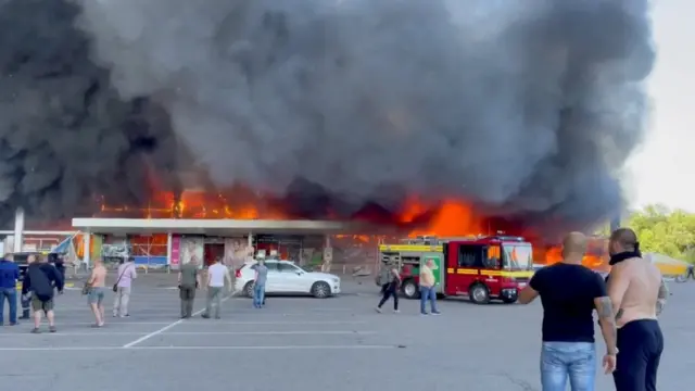 یوکرین کے پولٹاوا ریجن میں کریمنکوف نامی علاقے میں ایک شاپنگ سینٹر پر میزائل حملے میں کم ازکم 16 ہلاکتوں کی تصدیق ہوئی ہے۔ یوکرین کے صدر ولادیمیر زیلنسکی کا کہنا ہے کہ حملے کے وقت شاپنگ سینٹر میں تقریباً 1000 شہری موجود تھے۔