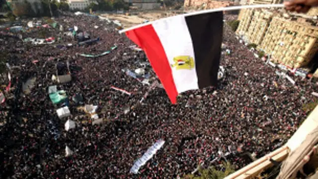 قاہرہ میں بی بی سی کے نامہ نگار جون لین کا کہنا ہے کہ ریلی میں شامل افراد پرامن دکھائی دیتے ہیں اور یہ مظاہرے سے کہیں زیادہ ایک بڑے جشن کا سا سماں دیکھائی دیتا ہے۔