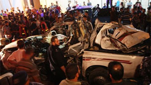 واقعہ کی تصاویر میں لوگ ایک جلی ہوئی سفید ٹویوٹا کے گرد جمع نظر آتے ہیں۔