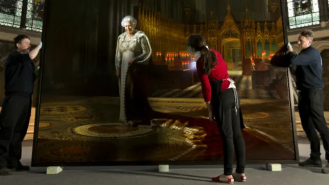 ویسٹ منسٹر ایبے میں لگی ملکہ برطانیہ کی آئل پینٹنگ کو آسٹریلوی نژاد مصور راف ہیمینز نے کینوس پر اتارا تھا۔ پینٹنگ مئی کے مہینے میں چیپٹر ہاؤس میں لگائی گئی تھی۔
