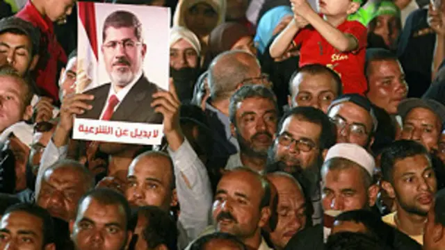 صدر مرسی کے حامی ان کو دوبارہ ان کے عہدے پر فائض کرنے کا مطالبہ کر رہے ہیں اور انھوں نے اس ہفتے ان بیرکوں کے قریب مظاہرے جاری رکھے ہیں جہاں خیال کیا جا رہا ہے کہ سابق صدر نظر بند ہیں۔