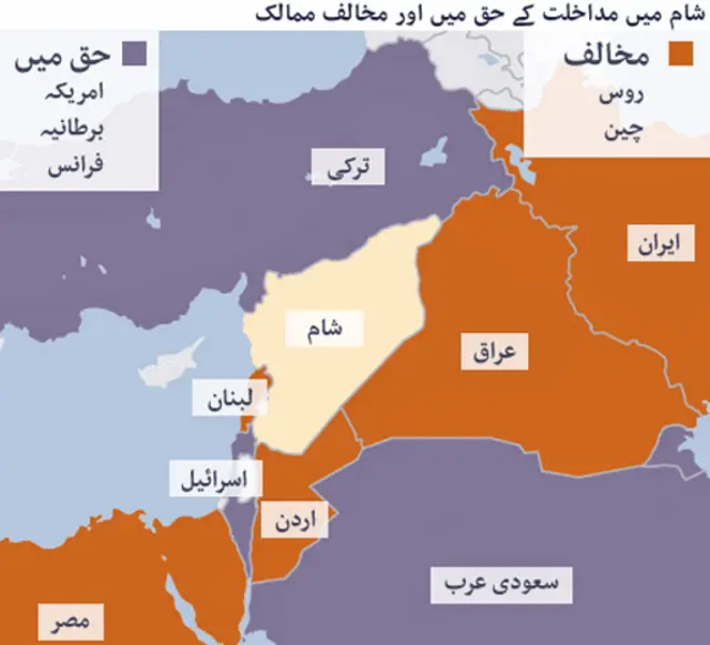 شام پر حملے کی صورت میں متاثر ہونے والے بعض ملکوں میں بی بی سی کے نامہ نگاروں نے وہاں گلی کوچوں میں رائے عامہ کی عکاسی کچھ یوں کی ہے۔