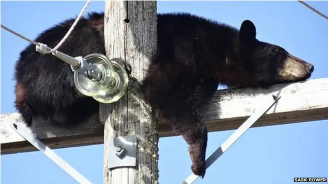 کینیڈا میں ایک ریچھ نے بجلی کپمنی کے ملازمین کو اس وقت حیران کر دیا جب انھوں نے دیکھا کہ ریچھ مزے سے بجلی کے کھمبے پر سو رہا ہے۔