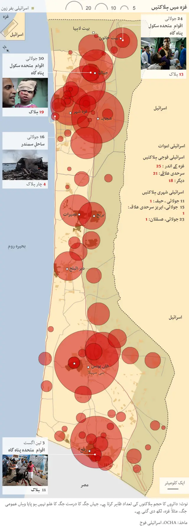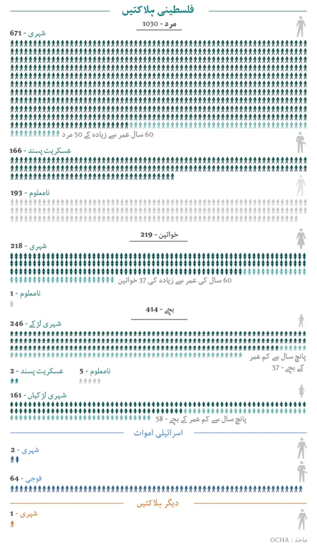 اقوام ِ متحدہ کے انسانی حقوق کے رابطہ دفتر OCHA کے اعداد و شمار کے مطابق چھ اگست تک 1890 فلسطینی ہلاک ہو چکے ہیں۔