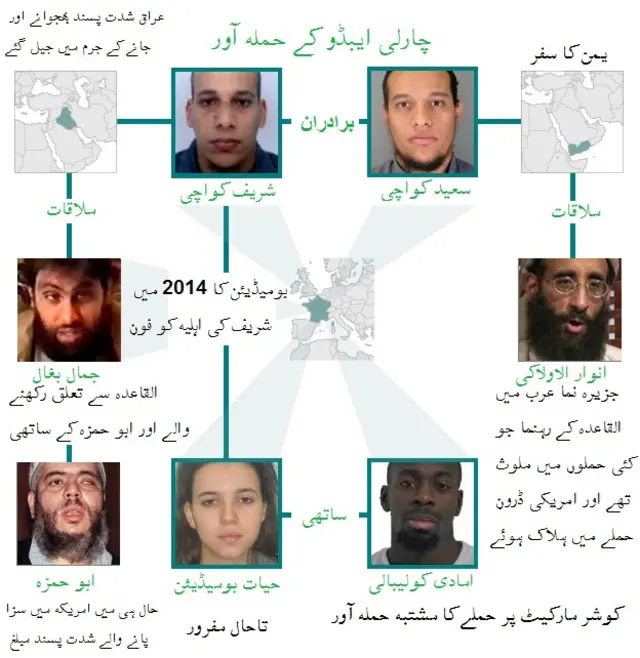 شریف کواچی کی فرانسیسی حکام کے مطابق دہشت گردوں سے یمن میں ملاقات ہوئی مگر یہاں یہ واضح رہے کہ ہزاروں افراد کا ان نیٹ ورکس سے تعلق رہا ہے جن میں سے کئی کا دہائی پرانا ہے۔