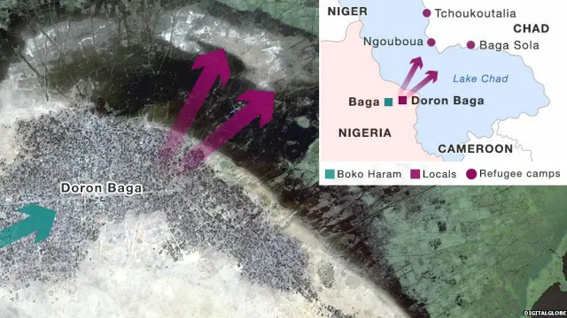 ڈورن باگا کی سڑکیں لاشوں سے بھری پڑی تھی۔ جب لوگ چاڈ جھیل کے کنارے پر پہنچے تو بوکو حرام والے ان کا پیچھا کر رہے تھے۔