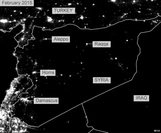 بدھ کو 100 سے زیادہ امدادی اور انسانی حقوق کی تنظیموں پر مشتمل گروپ نے سیٹیلائٹ فوٹوز شائع کی ہیں جس میں شام میں مارچ 2011 سے لے کر 2014 تک 83 فیصد روشنیوں میں کمی آئی ہے۔