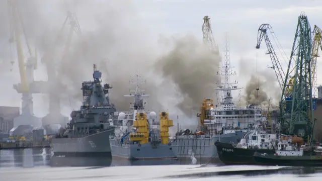 روسی خبر ایجنسی تاس نے بتایا تھا کہ گھاٹ کے دروازے بند کر دیے گئے ہیں اور آگ بجھانے والا عملہ اس مقام سے پیچھے ہٹ رہا ہے۔