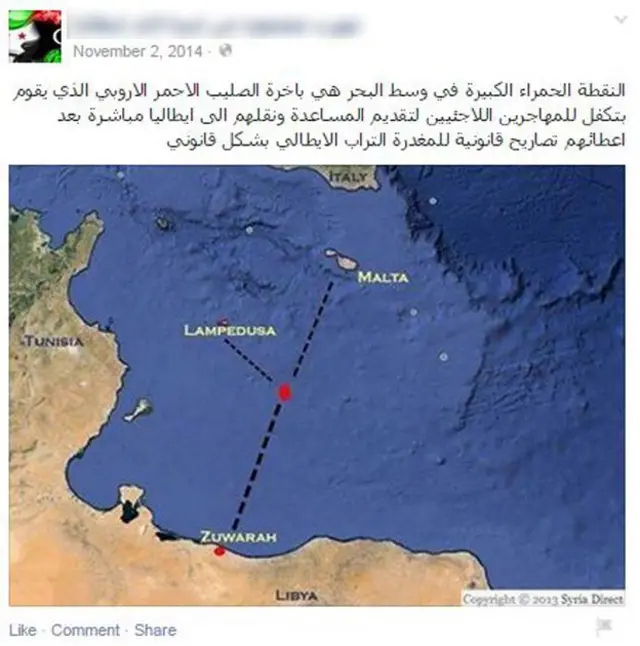بحیرۂ روم کے ذریعے لوگوں کو یورپ سمگل کرنے والے افراد اپنی تشہیر فیس بک پر کر رہے ہیں اور غیر قانونی تارکین وطن کو بحفاظت یورپ پہنچانے کے وعدے کر رہے ہیں۔