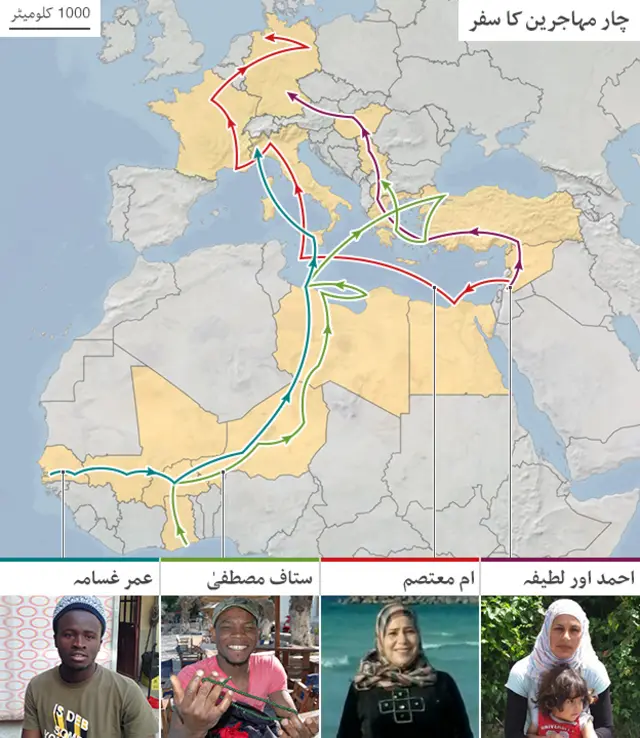 ان میں سے چار خاندان اور چند افراد جنھوں نے لمبا سمندری اور زمینی سفر طے کیا۔ وہ بتا رہے ہیں کہ انھوں نے اپنے گھر چھوڑنے کا فیصلہ کیوں کیا اور یورپ میں اپنے مستقبل کے بارے میں ان کی امیدیں کیا تھیں۔