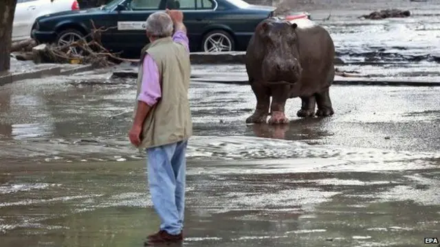 ایک دریائی گھوڑے کو شہر کے مرکزی چوراہے پر بے ہوش کرنے والی بندوق سے نشانہ بنا کر پکڑ لیا گیا ہے۔ جبکہ دوسرے جانوروں میں سے بھی کچھ کو پکڑ لیا گیاہے یا مار دیا گیا ہے۔